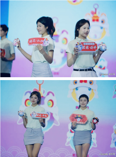 穿越千年的文创盛宴活动现场,"三国醒狮团"盲盒系列甫一亮相便引发热潮。该系列以十五运会吉祥物"喜洋洋""乐融融"为原型,创新融合岭南醒狮文化元素,将三国经典人物重塑为兼具传统韵味与潮流审美的艺术形象:武圣关羽化身"赤焰狮王",常山赵子龙演绎"清影银狮",倾国貂蝉变身"紫魅灵狮"广东金联盟文化发展有限公司董事长邬宇峰阐释设计理念:"我们构建了吉祥物穿越时空的叙事线——佩戴醒狮头饰的中华白海豚跃入岭南古巷,与三国英豪共舞南狮,最终奔向全运赛场,展现文化传承与体育精神的跨时空对话。"它们凭借可爱的造型、丰富的寓意以及巧妙的设计,赢得了现场观众的一致好评。这些文创产品不仅具有实用价值,更是承载着粤港澳大湾区的文化特色和全运会的体育精神。