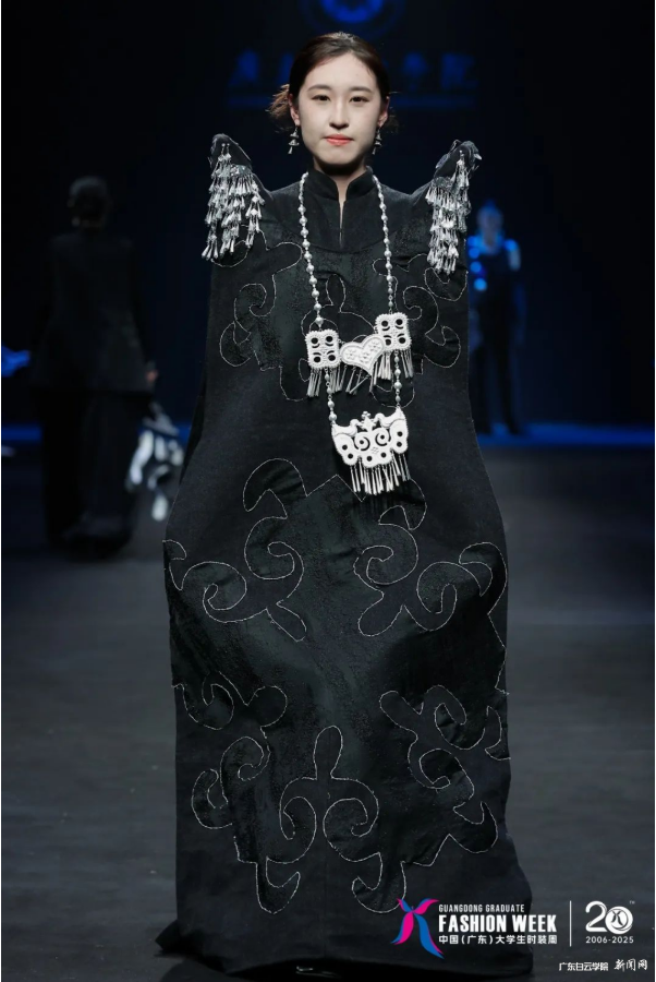 5月28日晚,广州国际轻纺城“2025广东大学生时装周”现场流光溢彩、星光闪烁。广东白云学院国际时尚设计学院毕业作品展演以“云·瑞”为主题,压轴登场!为现场观众呈现了28个系列、150套极具先锋意识的设计作品。“根脉→绽放→永恒”的叙事主线,生动诠释传统解码与未来智造的双向奔赴,展现我校“Z世代”服饰设计师们对人与自然关系的时尚哲思。