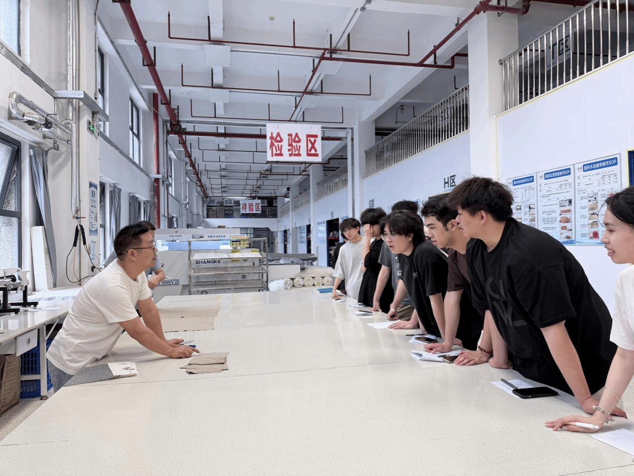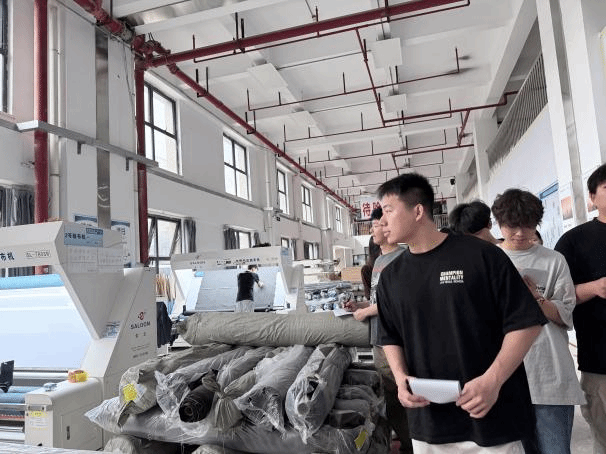 裁剪环节的实践中,同学们全程参与拉布、裁剪、黏衬、验片、分包的全流程操作,在企业技术人员的指导下,学习拉布的张力控制、裁剪的精度把控、黏衬的温度与时间掌握,以及裁片的检验标准与分包规范。大家严格按照生产工艺要求,规范操作每一道工序,同时主动思考,针对拉布过程中面料褶皱、裁片编号混乱等问题,梳理优化思路,形成了可落地的改进设想,将理论知识与实践操作紧密结合,切实提升岗位实操能力。