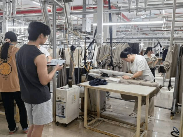 在后整环节,同学们聚焦专机操作、大烫整理、总查检验三大岗位,学习专机的专项缝制技巧、大烫的版型优化方法,以及总查环节的全方面质量把控要点。在总查岗位,同学们严格按照成品检验标准,逐一排查服装的针脚密度、版型规整度、辅料牢固性等细节,深刻体会到“精益求精”的工匠精神。同时,针对后整环节中存在的大烫效率不高、总查流程烦琐等问题,积极与企业导师沟通交流,探索优化路径,切实将实践学习与问题解决相结合,践行OBE“成果导向”的育人目标。